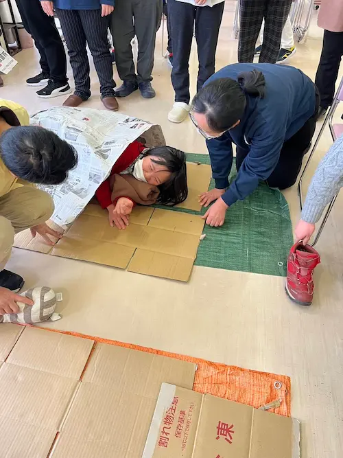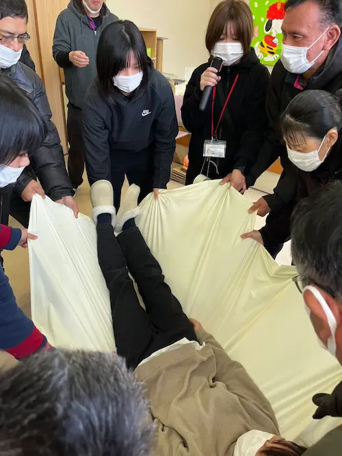 訓練を通して利用者さん達へは「自分もこれならできる!」「「これはしたことあるから知ってる、大丈夫」という経験を増やすことで、いざという時に力を出せるといいなといったメッセージを含めながらの訓練でした。